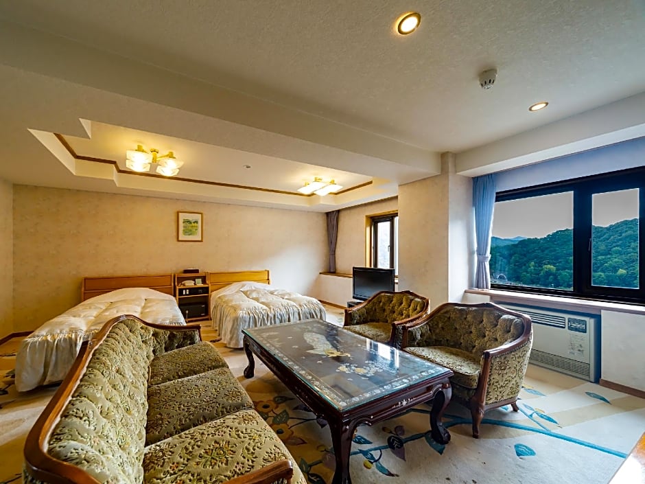 Providing free toiletries and bathrobes, this family room includes a private bathroom with a bath, a shower and a hairdryer. The family room provides air conditioning, tatami, a safe deposit box, an electric kettle and a flat-screen TV. The unit offers 2 beds and 3 futons.